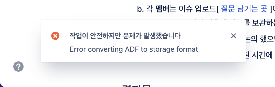 - "Error converting ADF to storage format." an error is displayed. (정효정) - Atlassian Community
