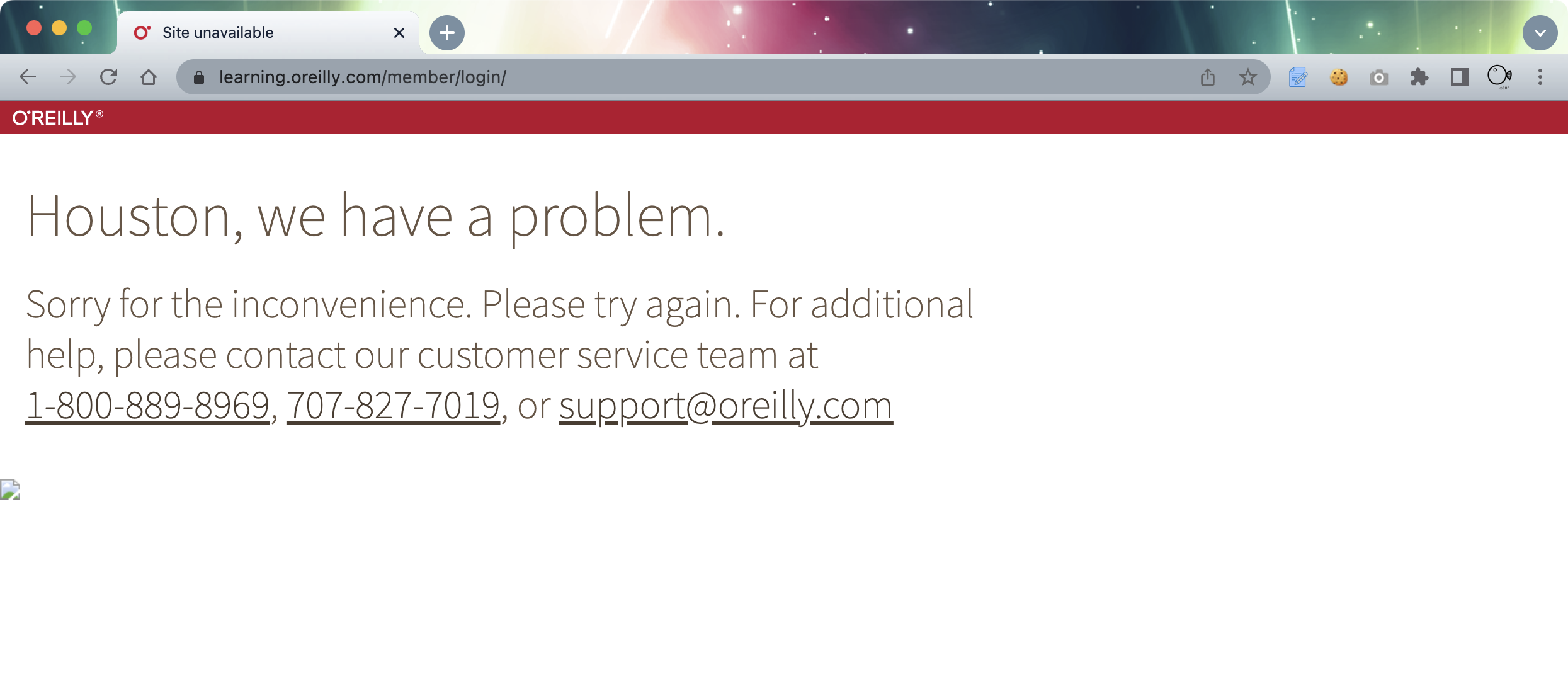 <h2>Sorry for the inconvenience. Please try again. For additional help, please contact our customer service team at <a href="tel:+1-800-889-8969" aria-label="1. 8 0 0. 8 8 9. 8 9 6 9." style="white-space:nowrap;">1-800-889-8969</a>, <a href="tel:+1-707-827-7019" aria-label="7 0 7. 8 2 7. 7 0 1 9." style="white-space:nowrap;">707-827-7019</a>, or <a href="mailto:support@oreilly.com">support@oreilly.com</a></h2>