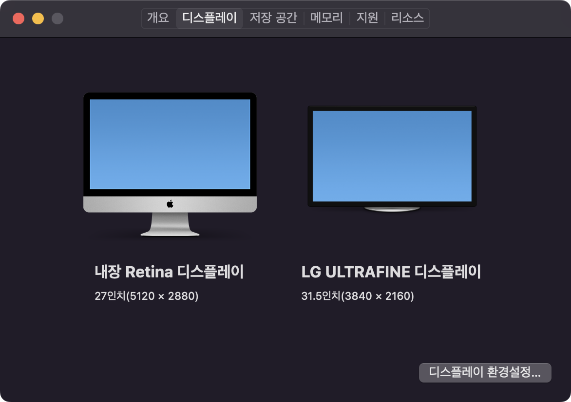 iMac은 5k이고 LG 27up850 4k라 해상도가 다르다.