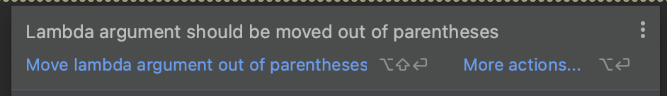또한 Kotlin 은 마지막 람다 표현식의 경우 ( ) 괄호 밖으로 뺄 수 있다. Passing trailing lambdas 참고.