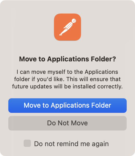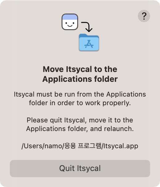 macOS 13버전인 Ventura로 업데이트하고 나서 ~/Applications 디렉터리에서 /Applications 로 옮기라는 메세지가 계속 떴다.