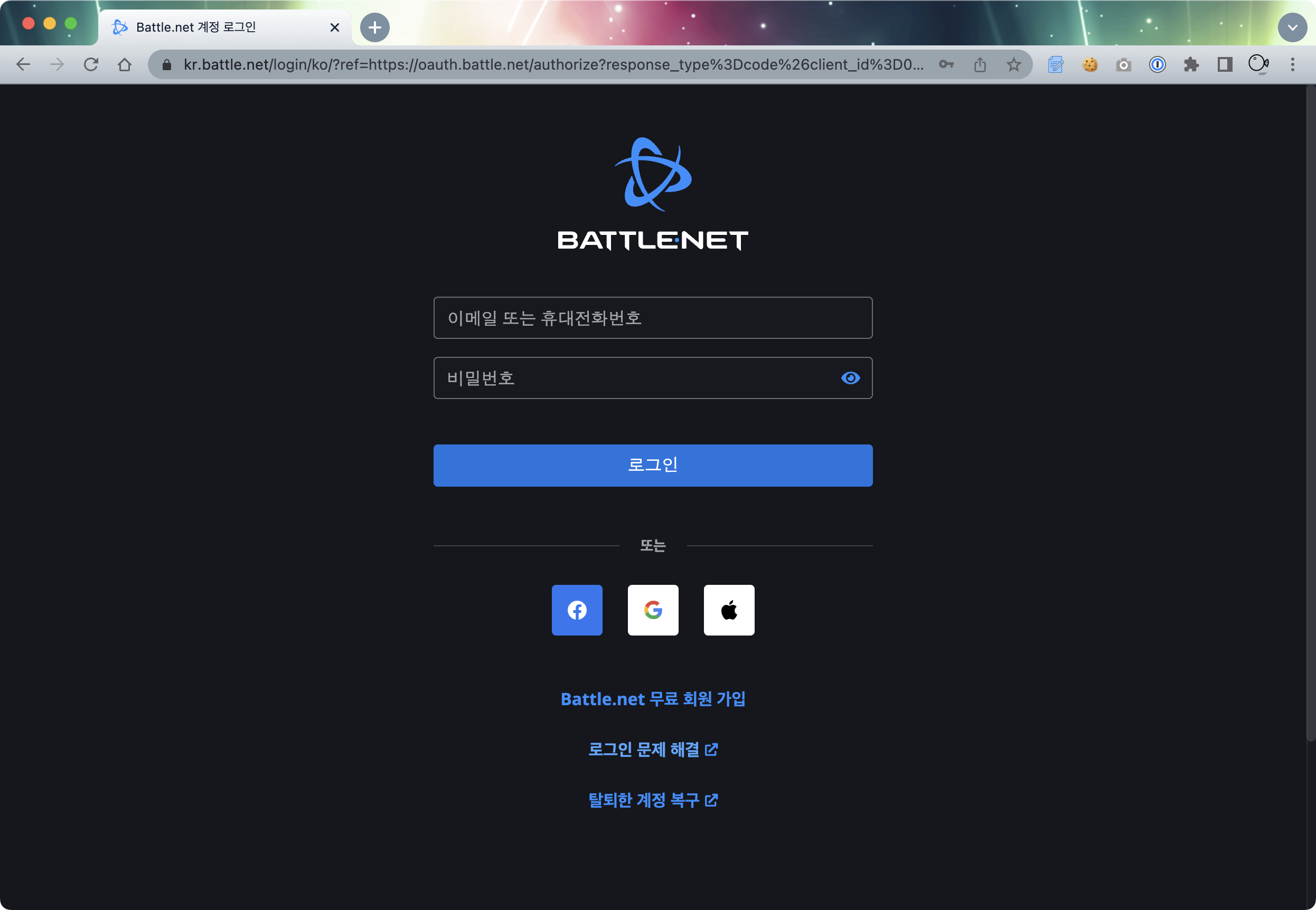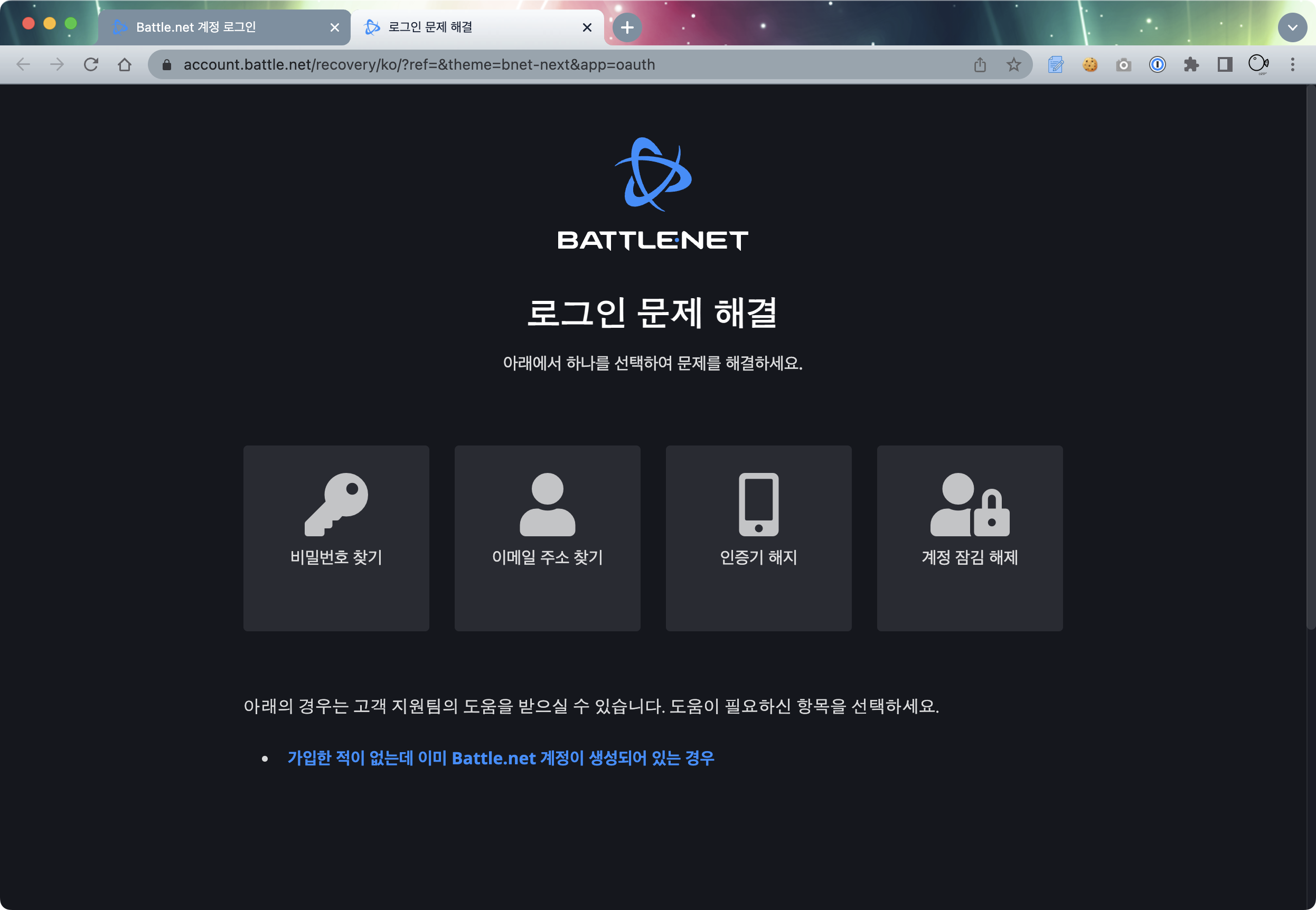 계속 이렇게 무한 반복을 할 수 없어서 혹시나 싶어 "응용 프로그램"에 모셔져 있던 Battle.net 앱을 이용해보기로 했다.