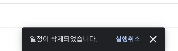 가령 일정을 삭제했을 때 구글 캘린더는 아래와 같은 살짝 뜨는 UI를 보여준다.