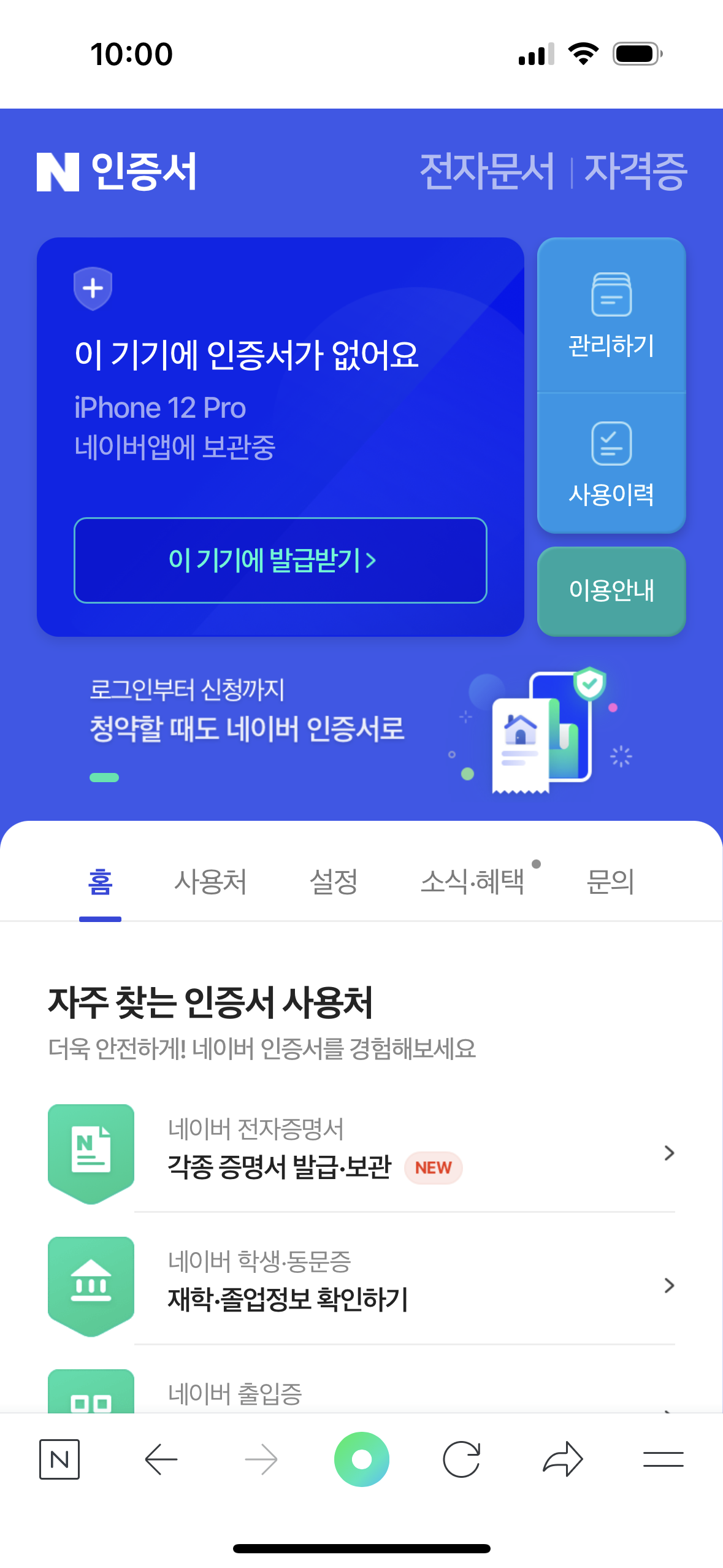 19. 새 앱에는 네이버 인증서가 없다고 해서 다시 네이버 인증서 발급