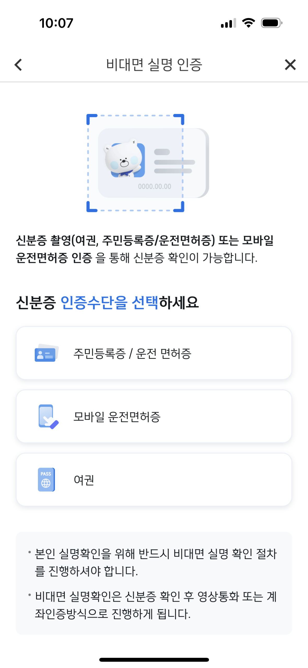 4. 비대면 실명 인증을 위해서는 신분증이 필요하다.