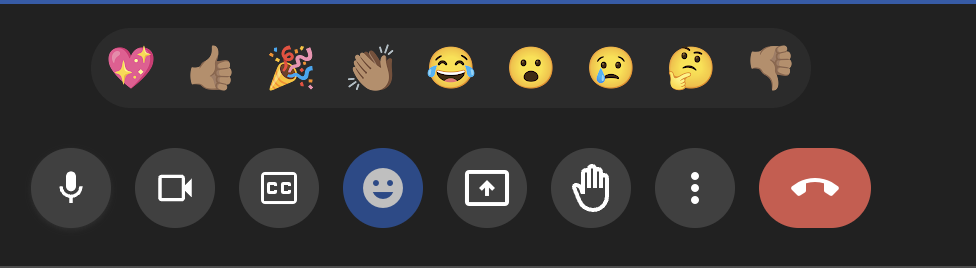 Google Meet 에는 비교적 나중인 2023년 1월 정도에 추가된 기능인 이모지 리액션 기능이 있다.