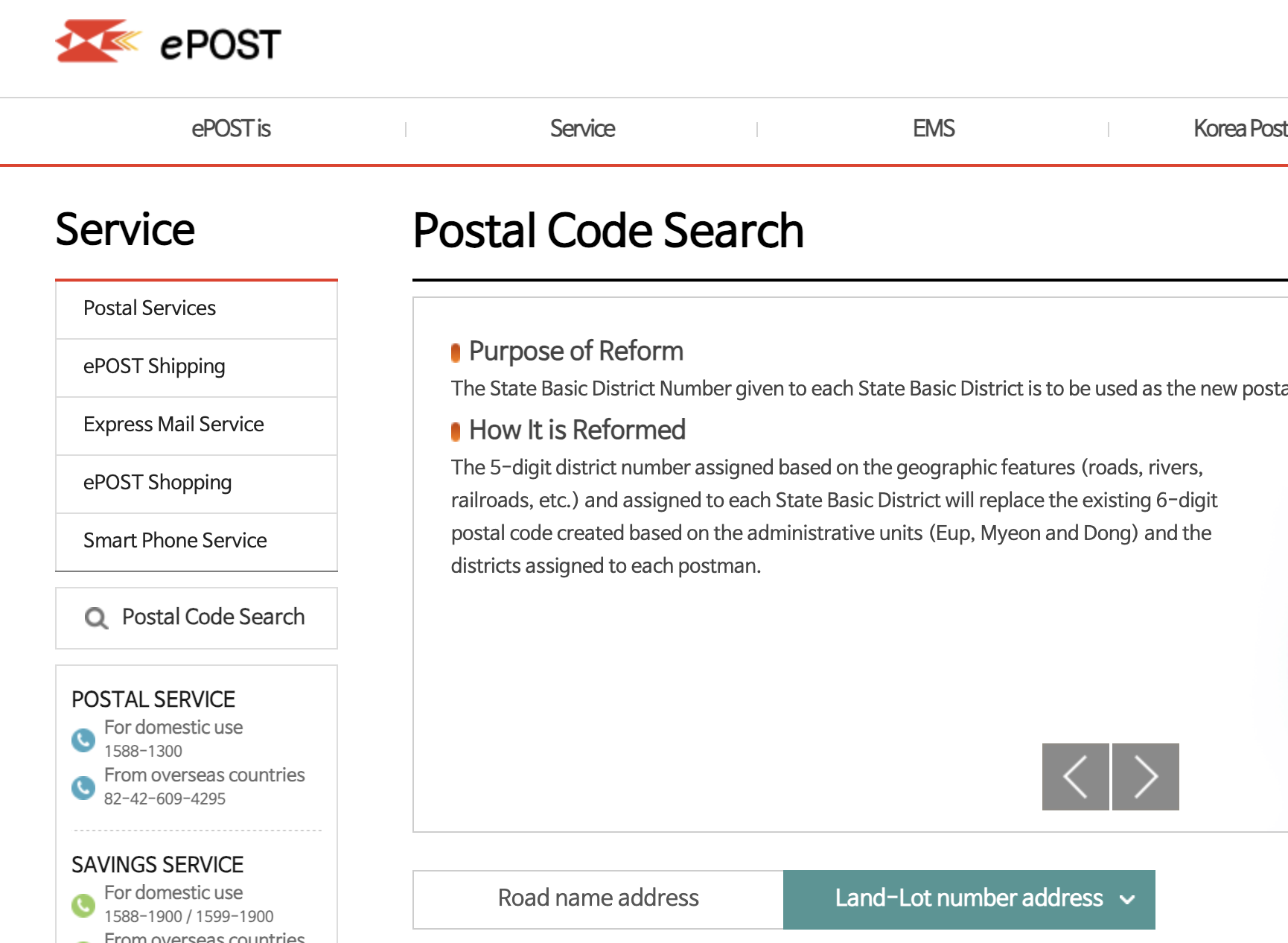 나중에 ePOST 영문 페이지를 보니 지번 주소는 Land-Lot number address 를 사용하고 있었다.