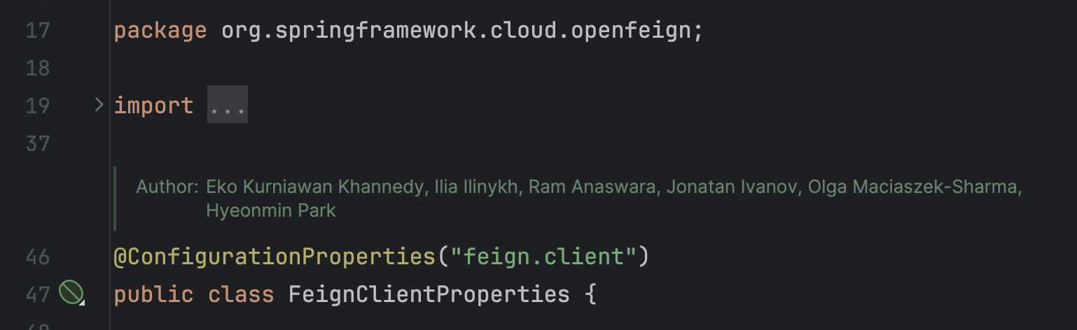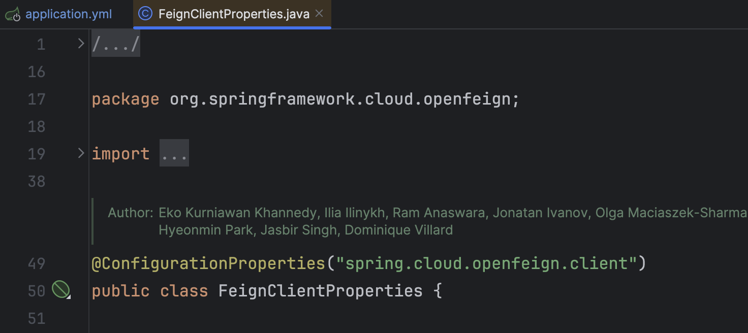 일단 2022년 9월 7일 커밋으로 체크아웃을 해보니 spring-cloud-openfeign-core:3.1.3 에서는 프로퍼티가 syntax-highlight가 동작하고 있었다.