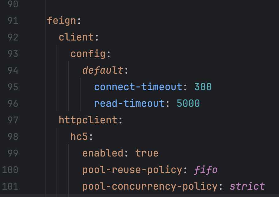 처음 스프링 클라우드의 OpenFeign 추가했을 때 설정은 아래와 같았다.