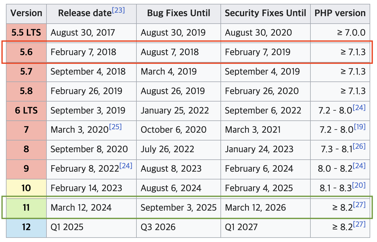 6년전인 2018년 2월 릴리스되었고 현재 마지막 버전은 2024년 3월에 릴리스한 11이다.