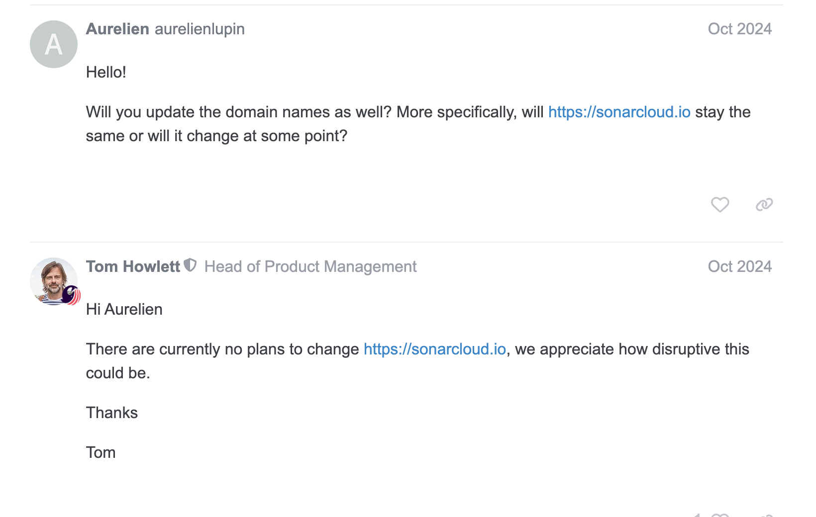 사이트의 도메인주소도 바뀌나 싶었는데 Aurelien의 질문에 현재 바꿀 계획은 없다고 한다.