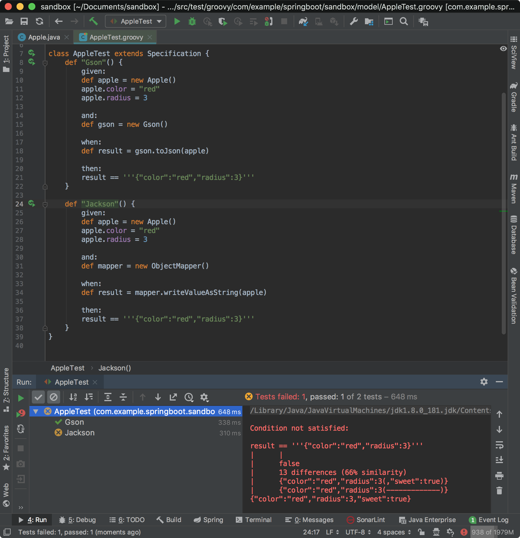Gson은 추가한 메서드에 영향을 받지 않지만, Jackson은 기존 테스트가 실패했다.