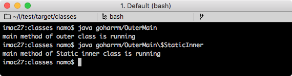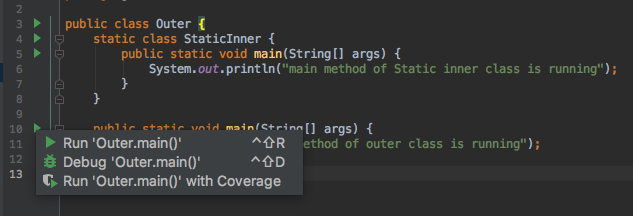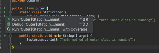 System.out.println("main method of outer class is running");