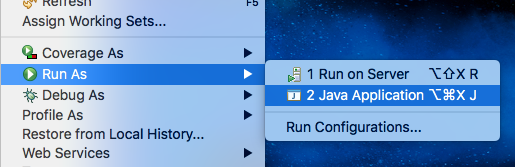 클래스를 찍고 오른쪽을 누르고 나오는 팝업 메뉴에서 Run As > Java Application 을 선택하면,
