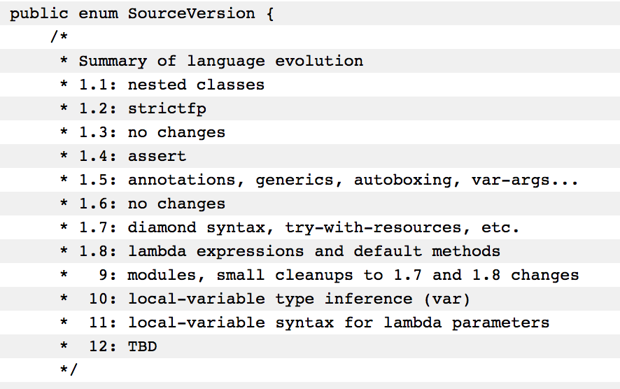 바로 이 SourceVersion 의 주석에 주요 특징이 적혀있다.