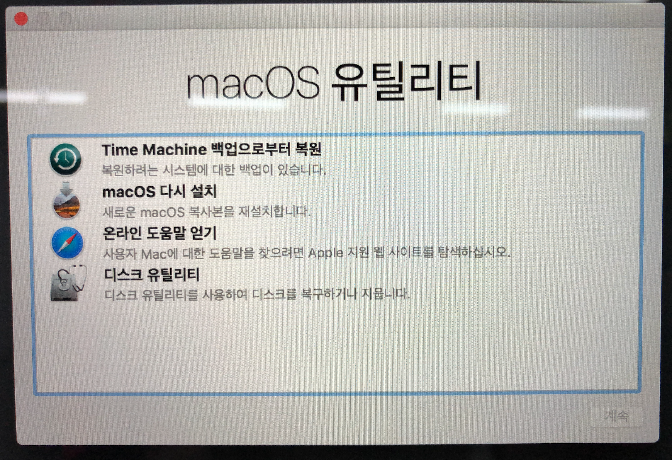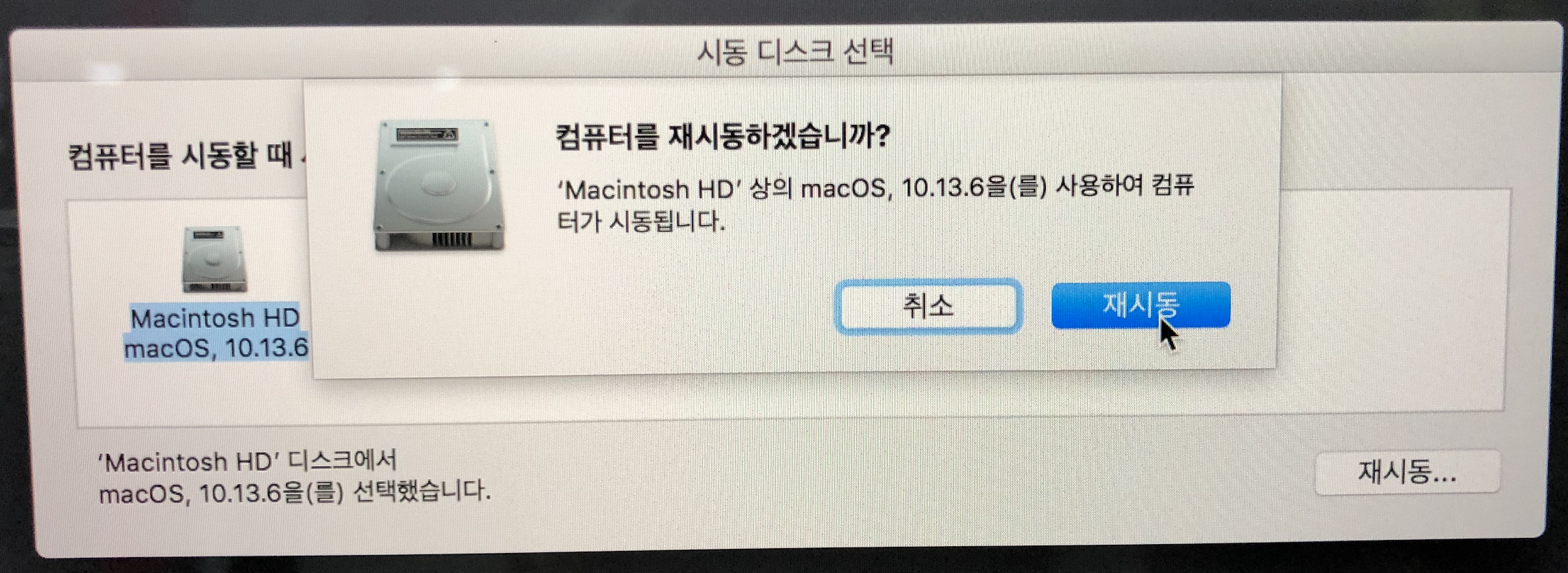 결국 해결을 한 방법은 복구디스크 모드(command - R)에 들어가서 대상 디스크를 잡고 나서였다.