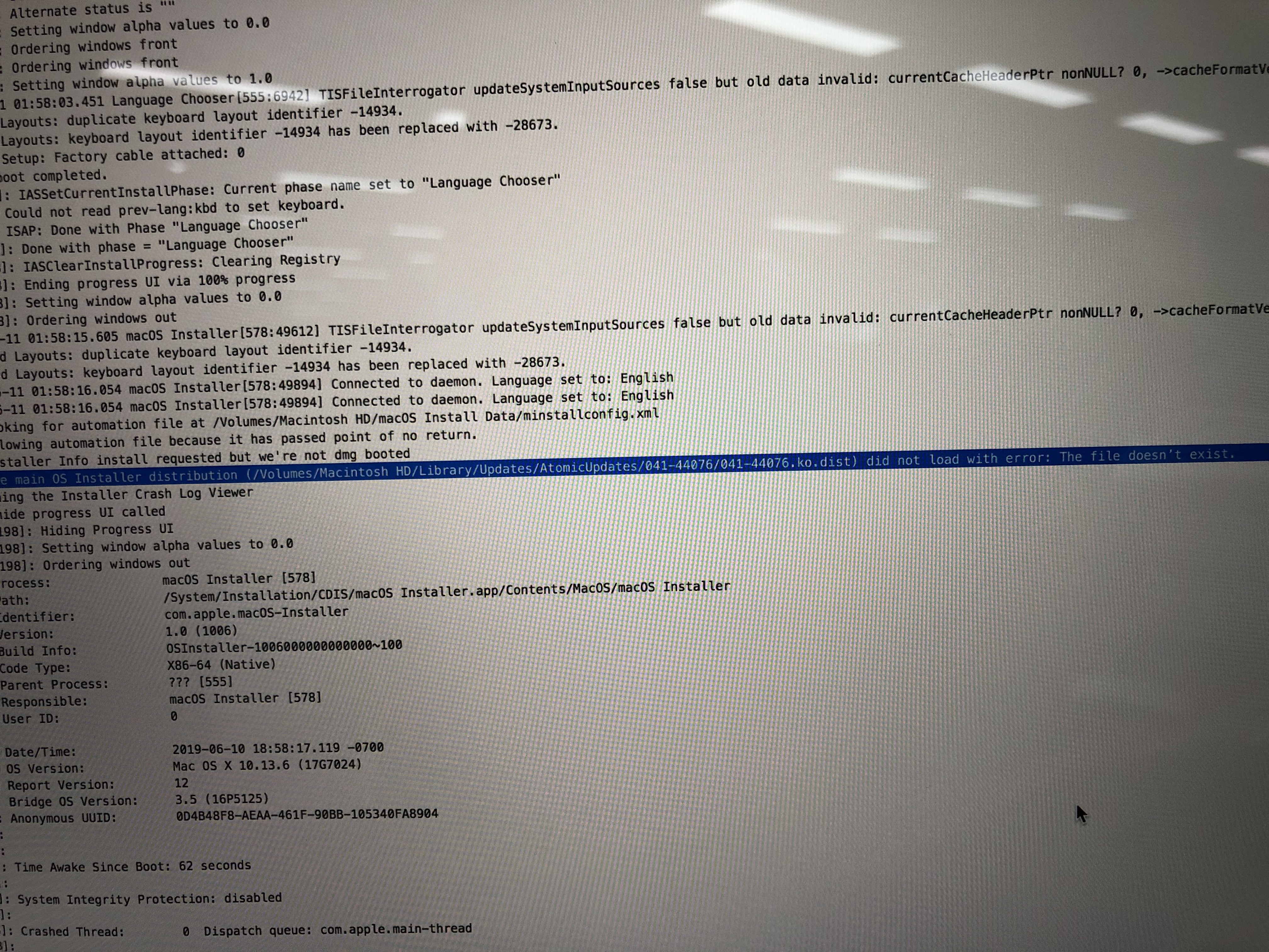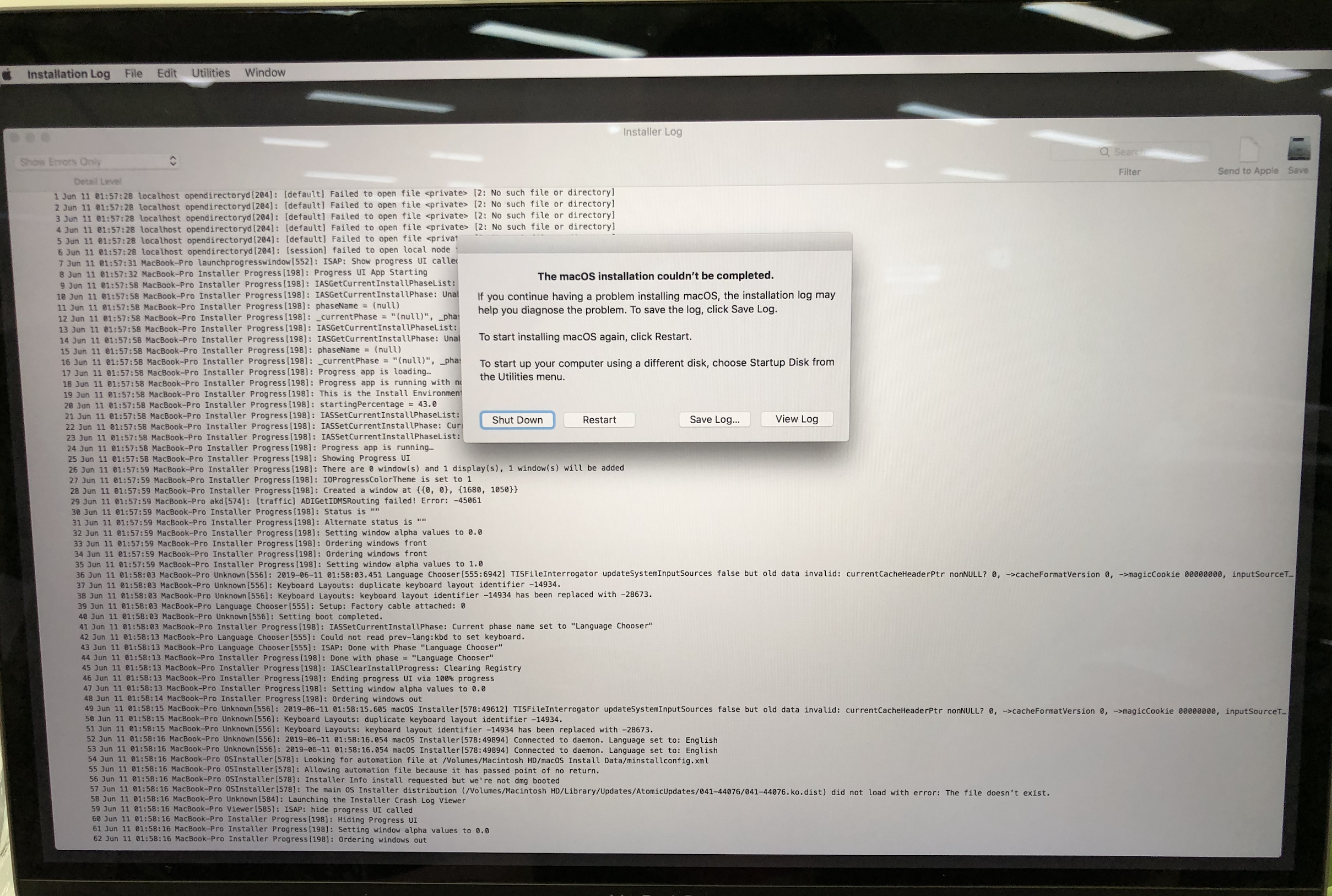 Jun 11 02:11:24 MacBook-Pro OSInstaller[575]: The main OS Installer distribution (/Volumes/Macintosh HD/Library/Updates/AtomicUpdates/041-44076/041-44076.ko.dist) did not load with error: The file doesn’t exist.