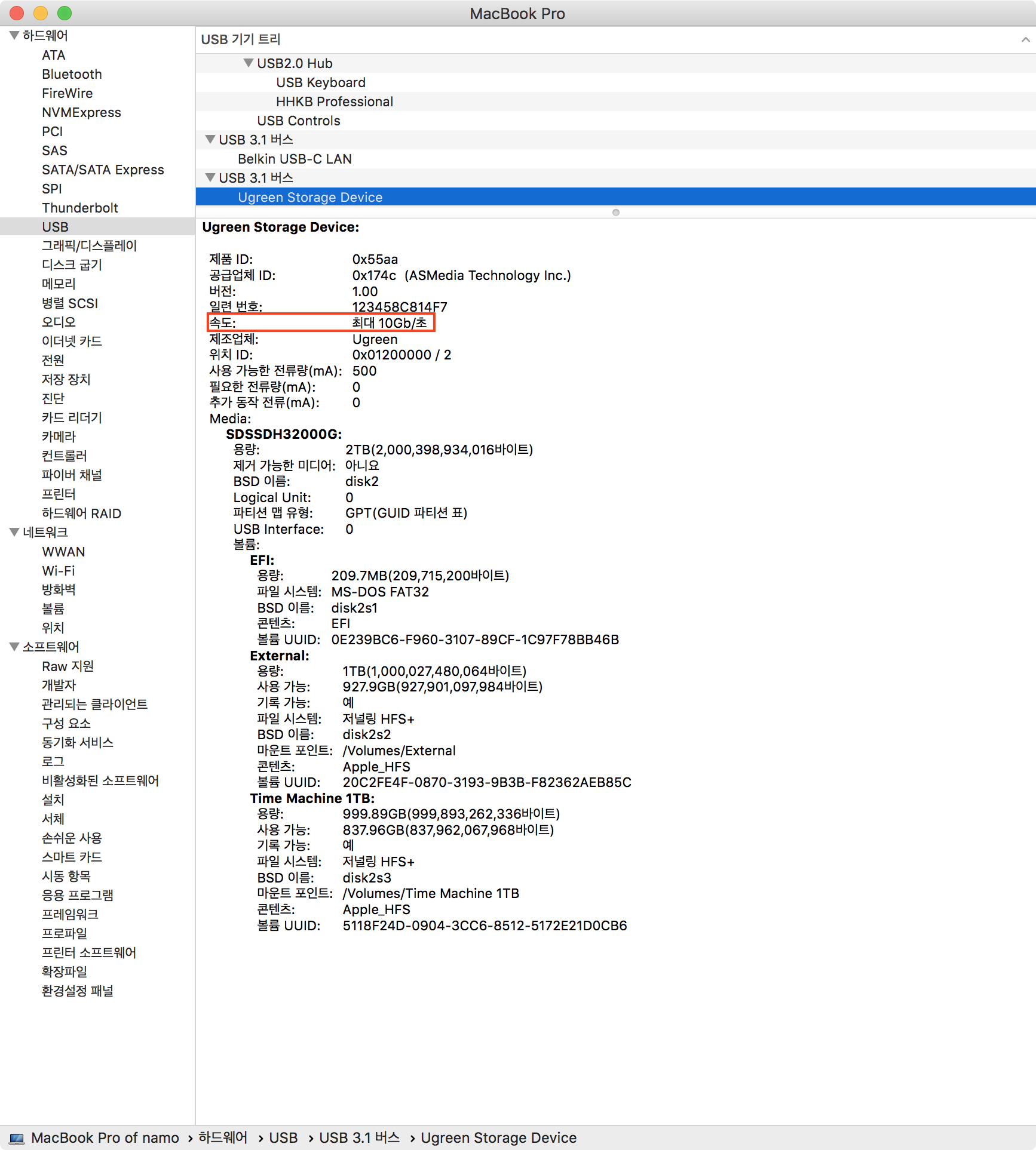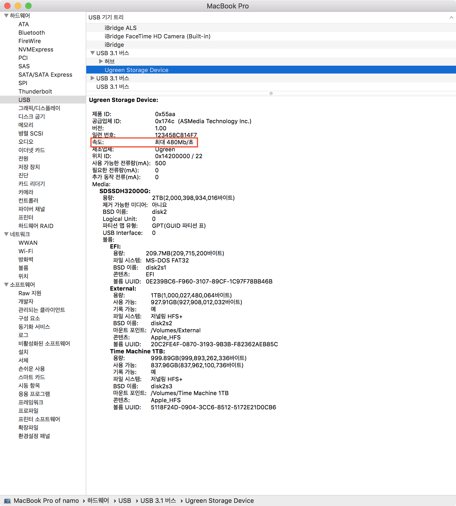 연결 정보를 보니 USB2로 연결되어 있었다.