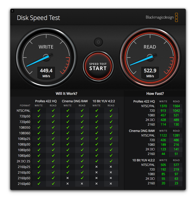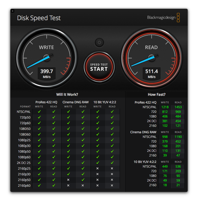 썬더볼트1 도킹 스테이션으로 SSD (SATA 방식)에 연결해보면 아래와 같이 나온다.