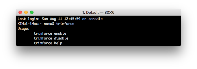 터미널을 띄워서 trimforce 를 쳐보면 아래와 같이 가능한 목록이 나온다.