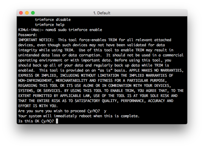 El Captain 이후 (Sierra, High Sierra 포함) 에는 SSD의 트림을 강제로 활성화할 수 있는 옵션이있다.