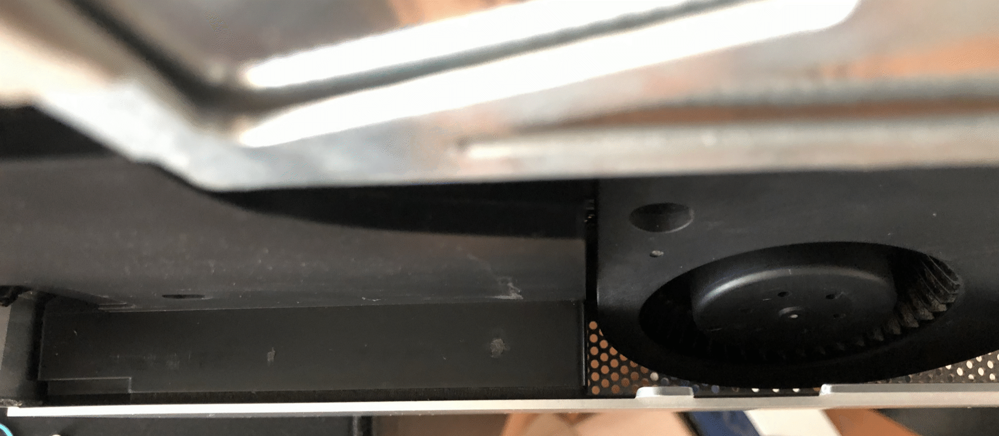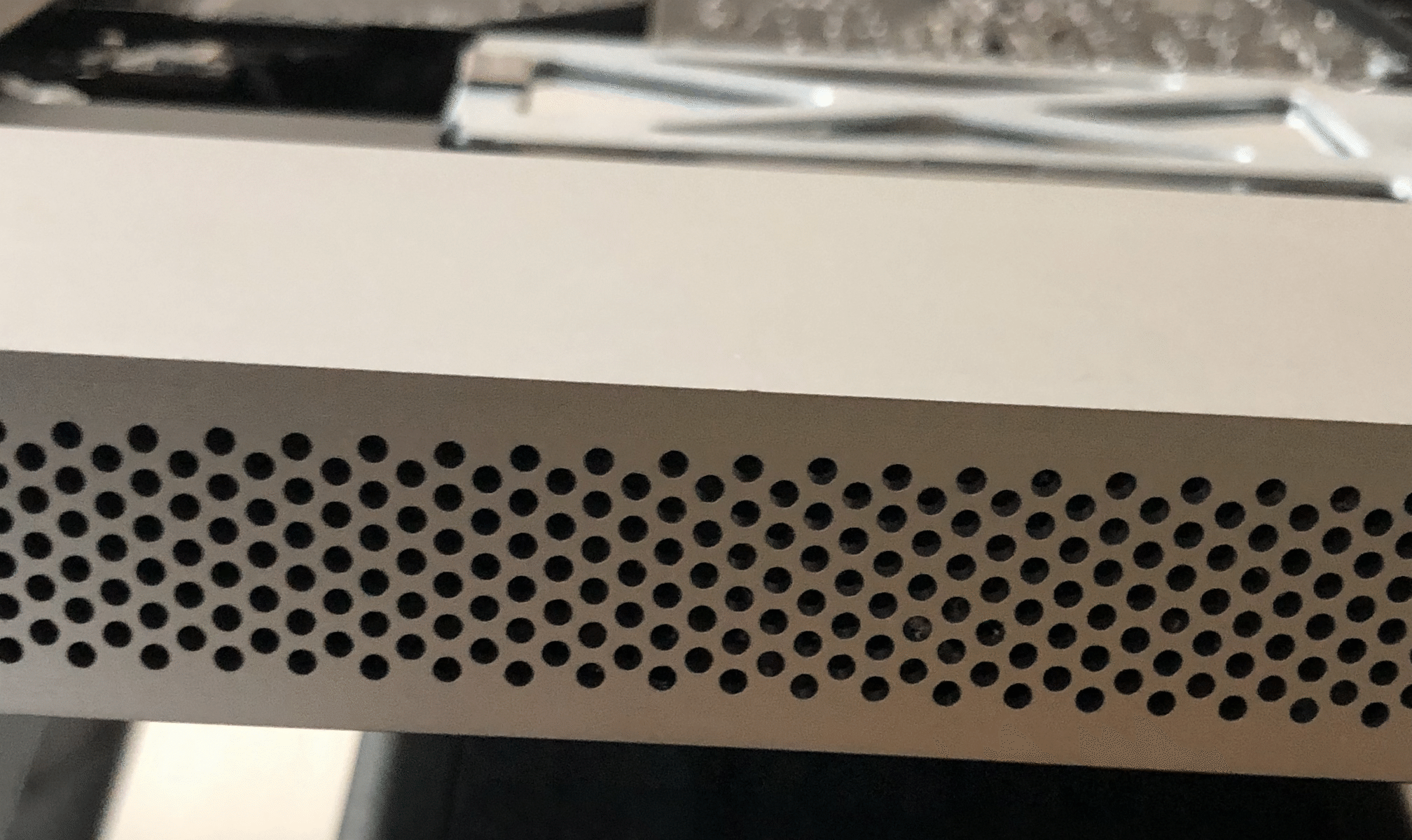 왼쪽 스피커 쪽에서 아래로 보면 아래와 같은 틈이 있습니다.