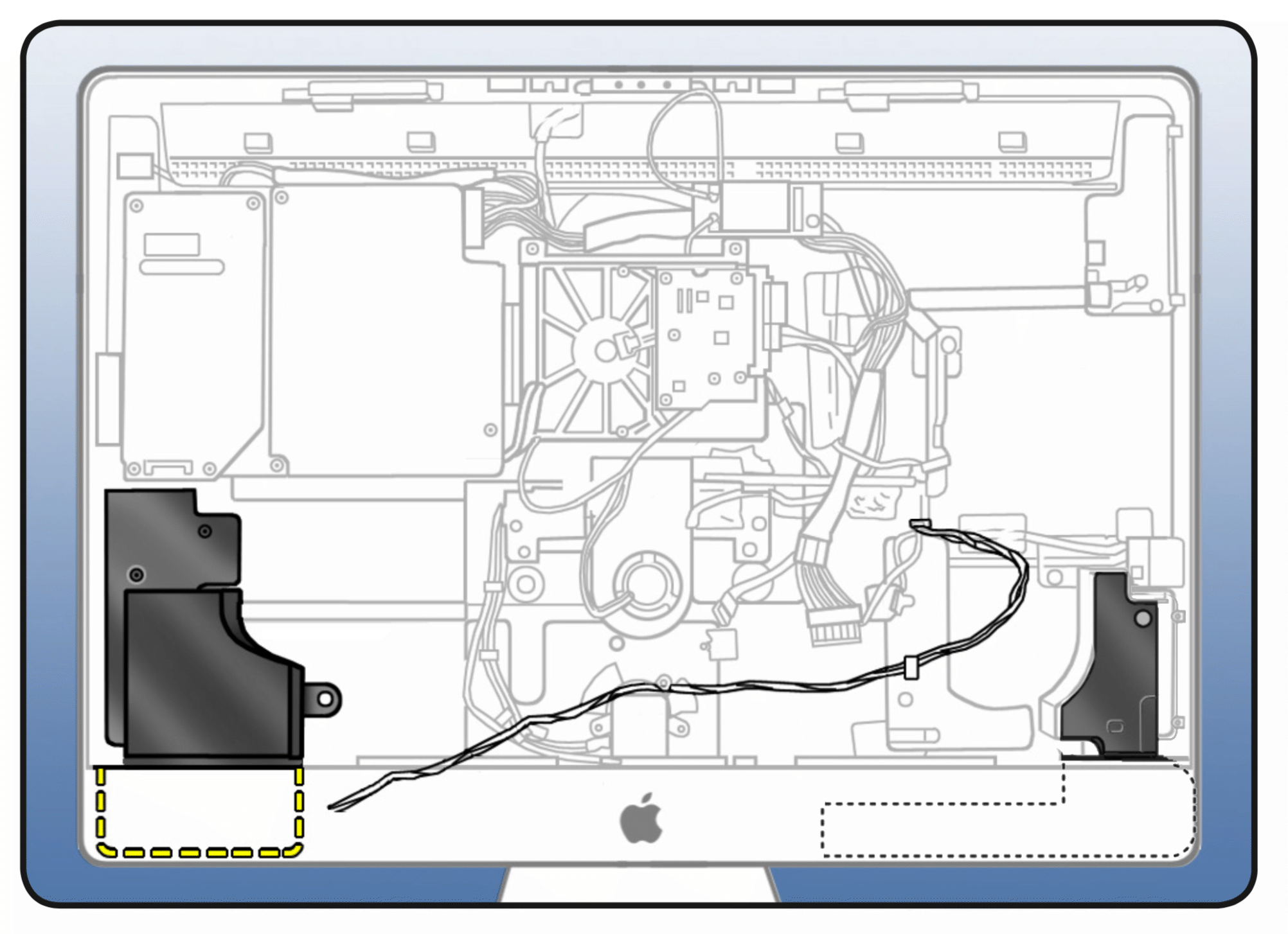 iMac의 2009의 스피커입니다. 출처: iFixit 19단계