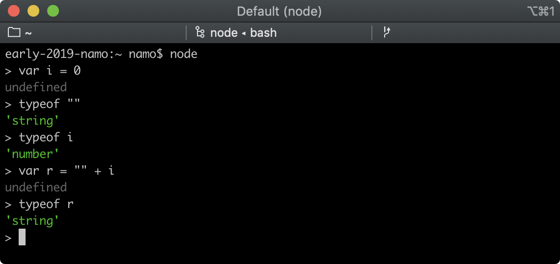 자바스크립트에서는 문자형(string)과 숫자형(number)을 + 연산으로 수행하면 결과가 string이 된다.