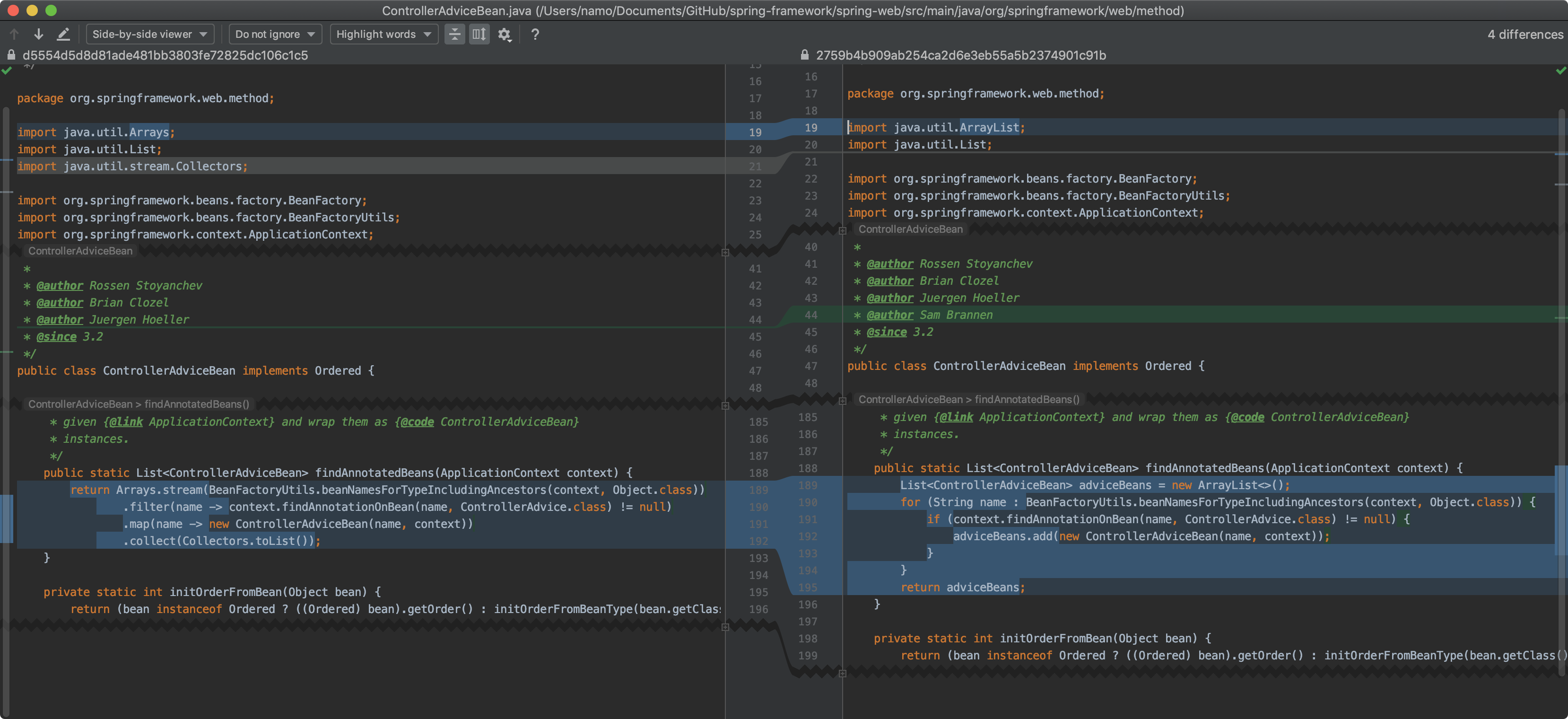 커밋 로그가 "Avoid use of Stream API in ControllerAdviceBean" 이다.