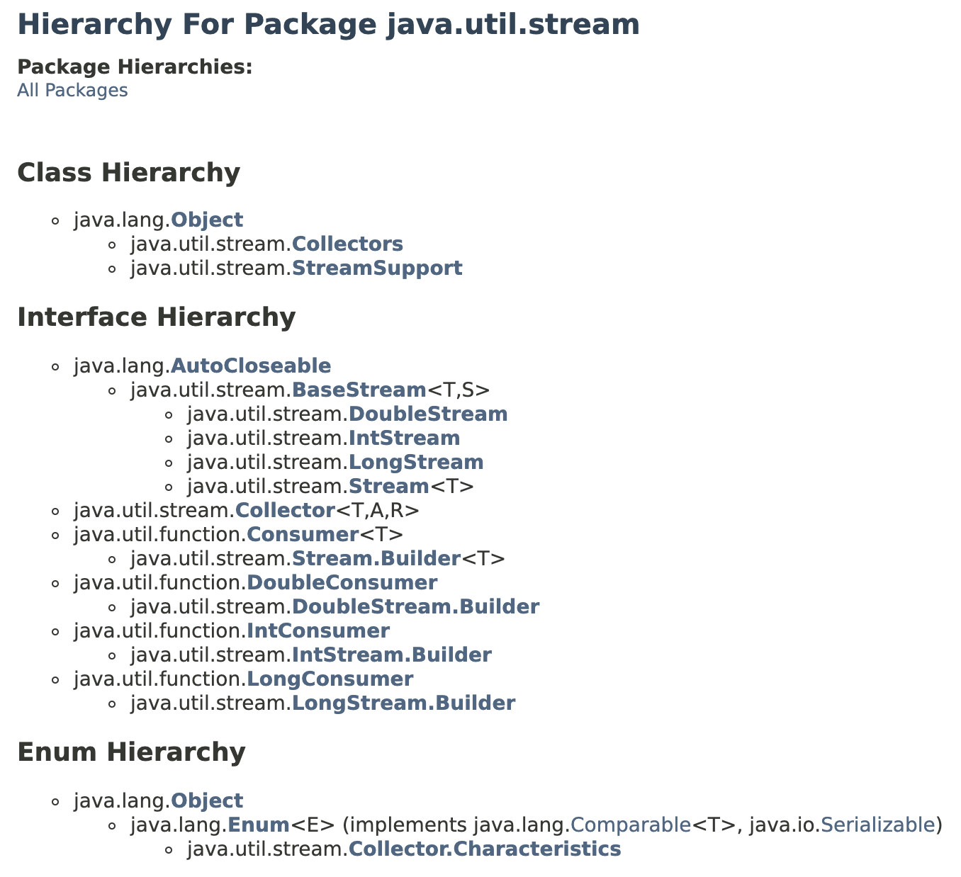 또한 제너릭 인자 두 개를 갖는데 하나는 스트림 원소들의 타입(T)이고 나머지는 BaseStream을 구현하는 또 다른 타입(S)이다.
