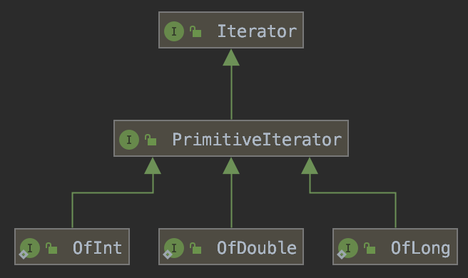 BaseStream 인터페이스에는 스트림의 원소를 순회하기 위해 Iterator<T>를 반환해주는 iterator() 메서드를 가지고 있다. Java 1.2부터 있던 것이라 이미 많이 익숙해서 설명은 생략한다. 대신 Java 8에는 Iterator를 상속하는 PrimitiveIterator 인터페이스가 추가되었다.