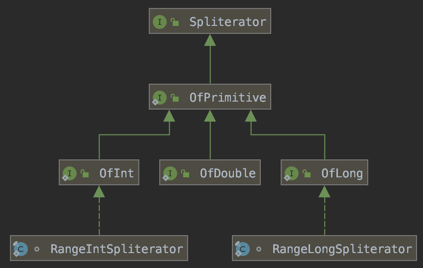 인자로 받는 Streams.RangeIntSpliterator는 위에서 보는 것 처럼 Spliterator.OfInt이다.