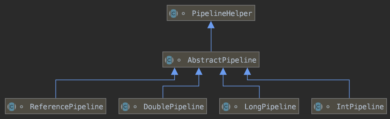 pipeline 클래스도 위에서 살펴본 BaseStream 처럼 계층구조로 되어있다. 다만 위에서는 인터페이스라면 여기는 추상클래스이다.