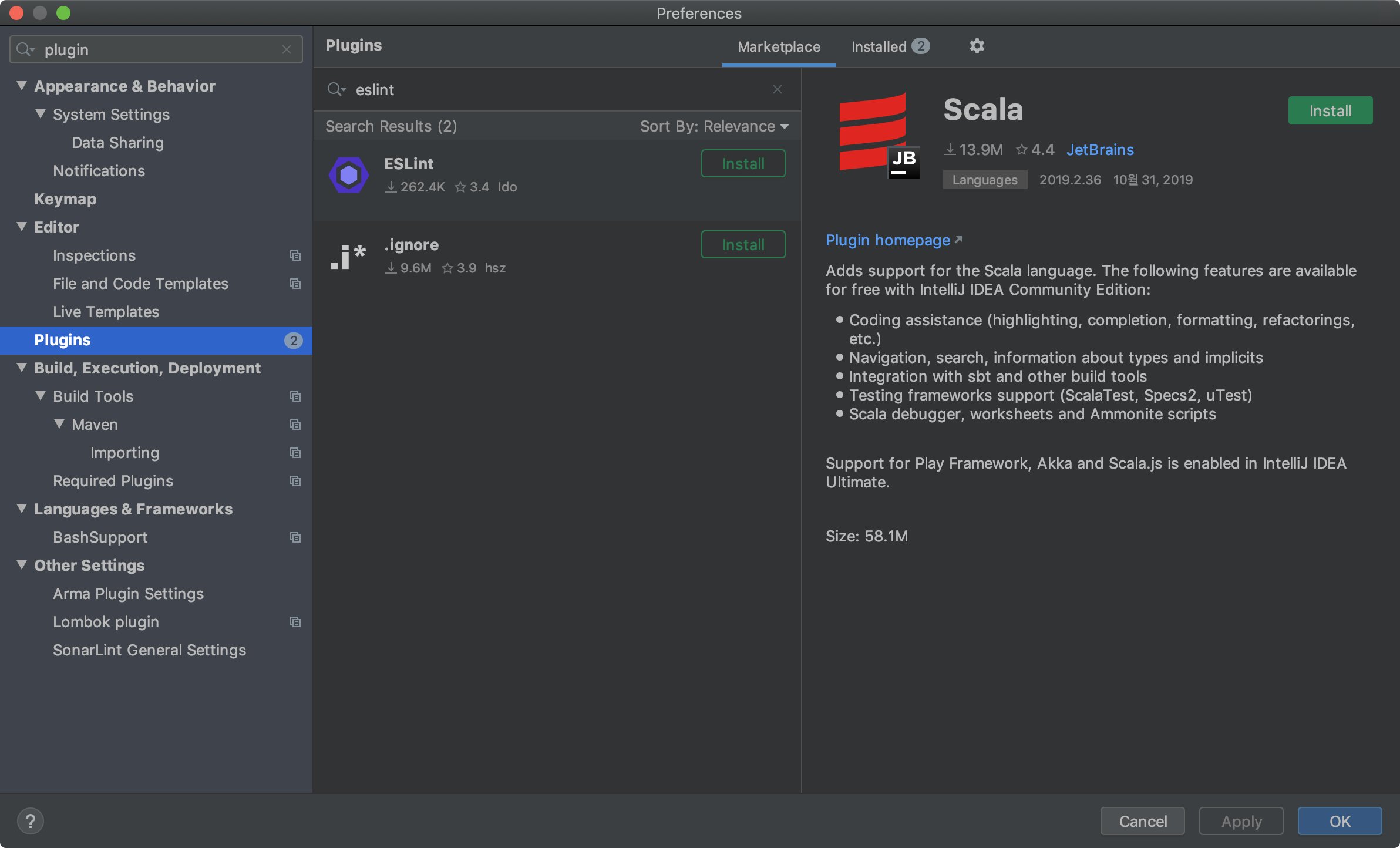 혹시나 싶어 IntelliJ IDEA에도 플러그인이 있나 찾아보니...