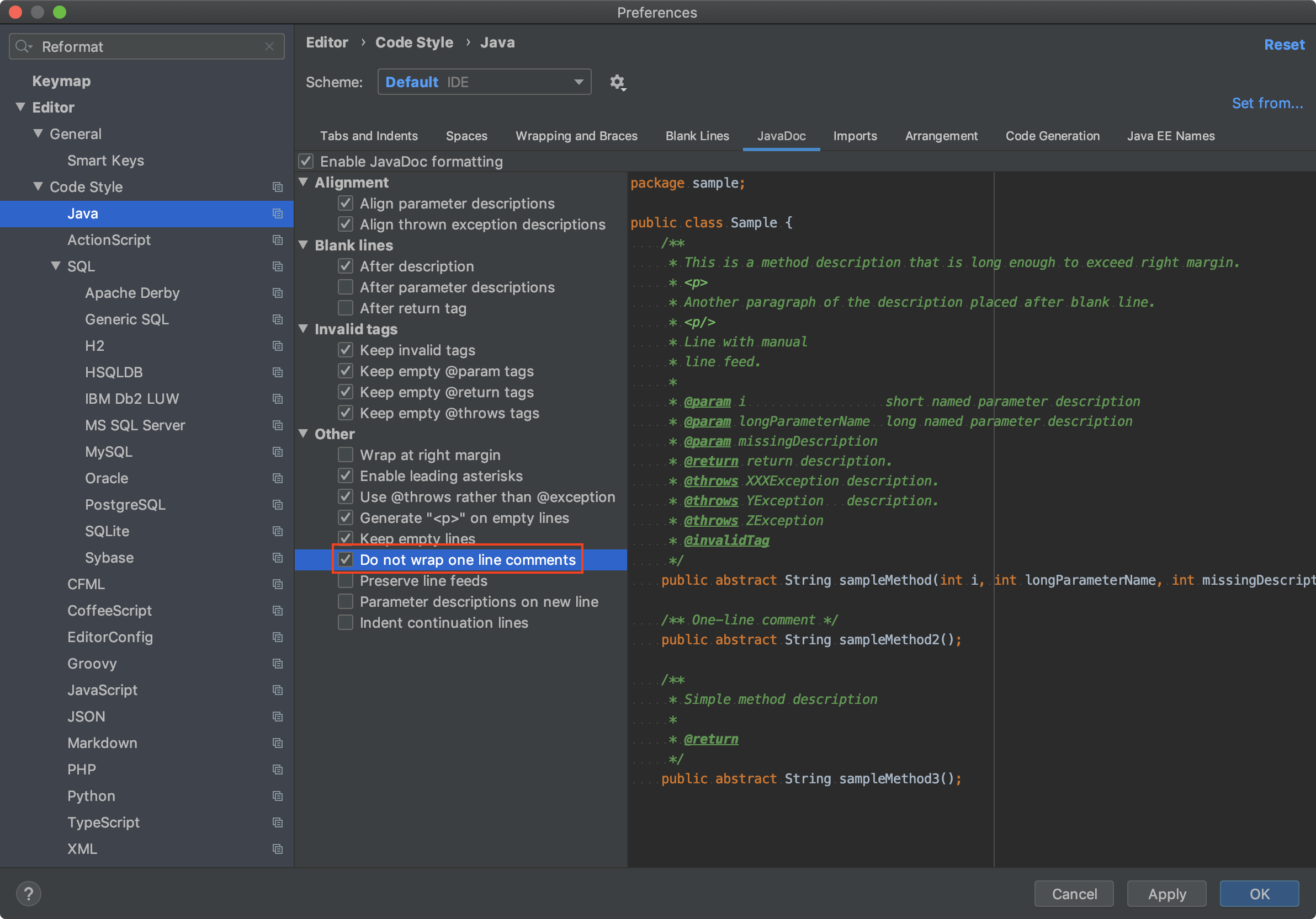 Editor> Code Style > Java