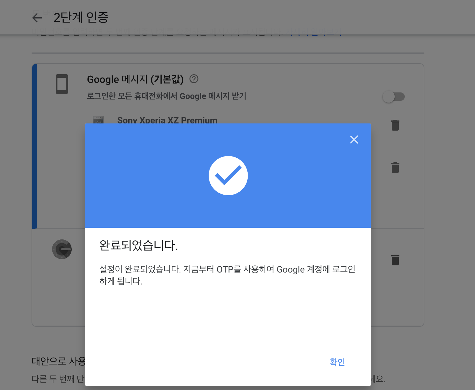 구글 로그인을 하고 여기에서 기기 인증 변경을 할 수 있다.