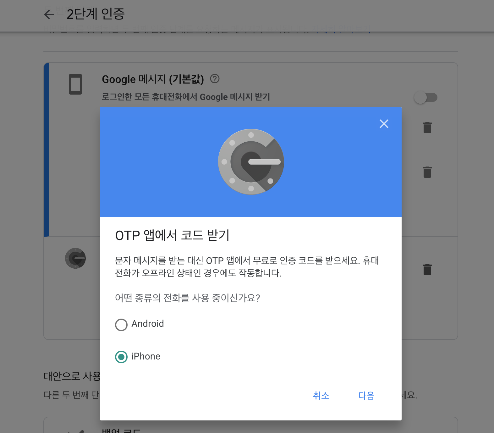 그리고 Google Authenticator (OTP)는 여전히 데이터가 이동이 되지 않았다.