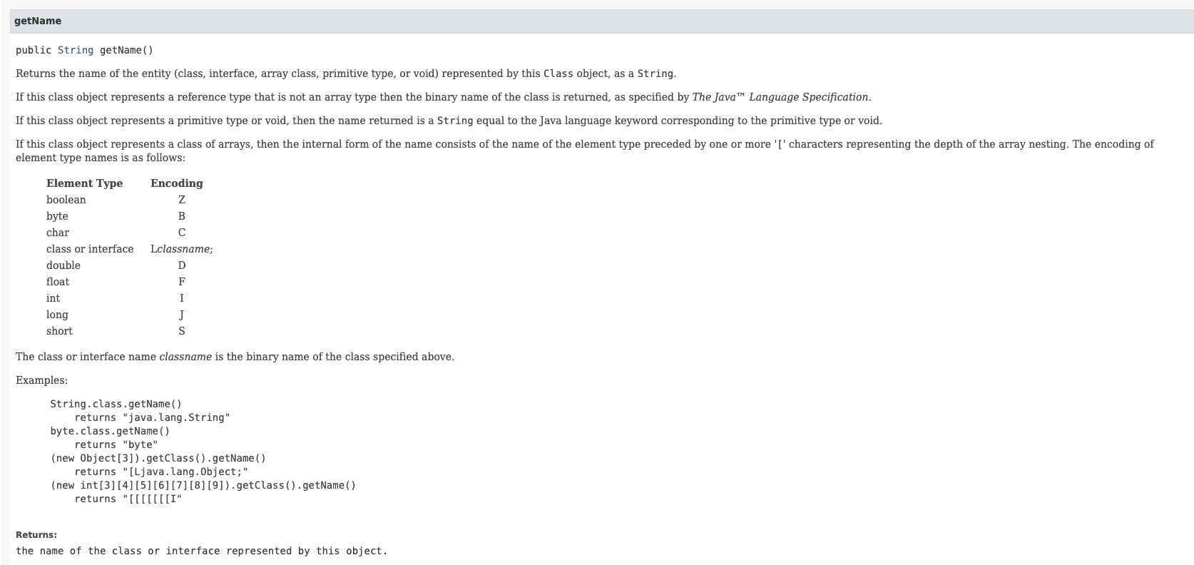 https://docs.oracle.com/javase/8/docs/api/java/lang/Class.html#getName--