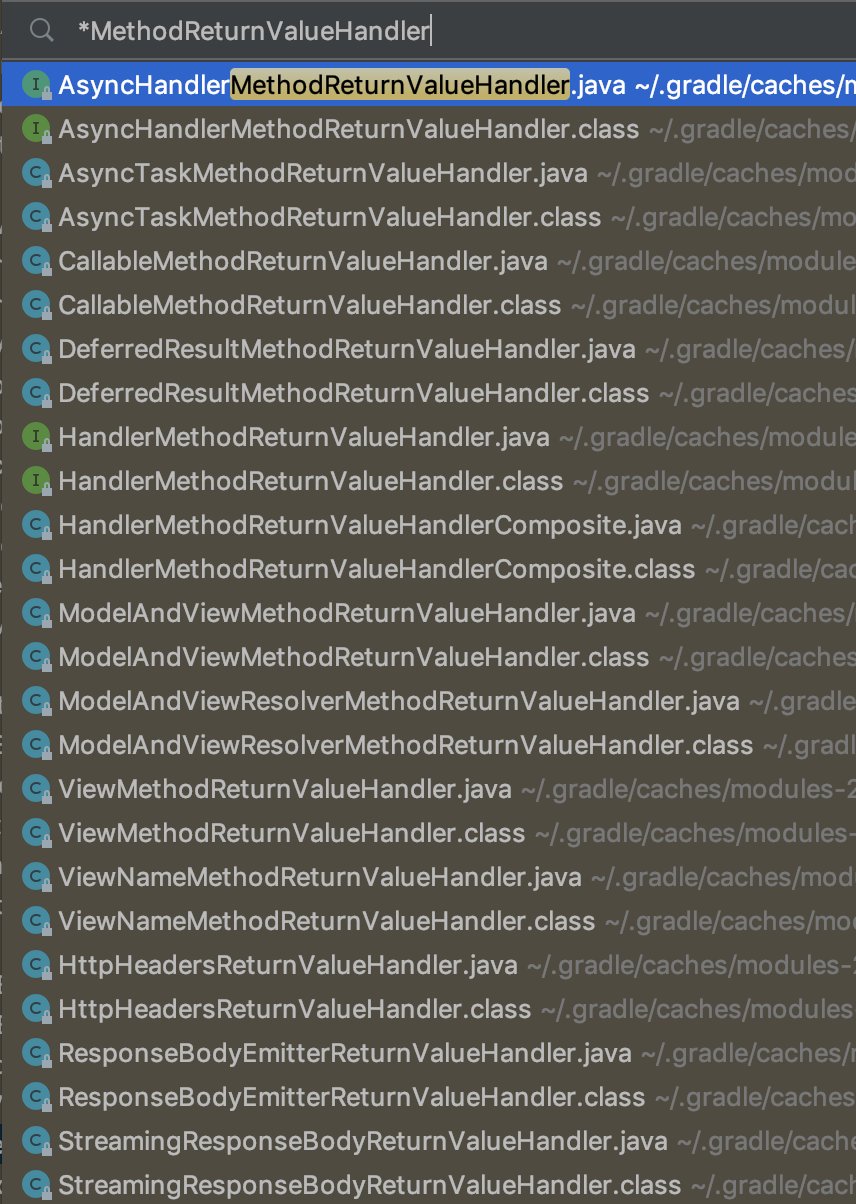 HandlerMethodReturnValueHandler 인터페이스를 구현한 처리기는 아래 목록 처럼 꽤 많다.