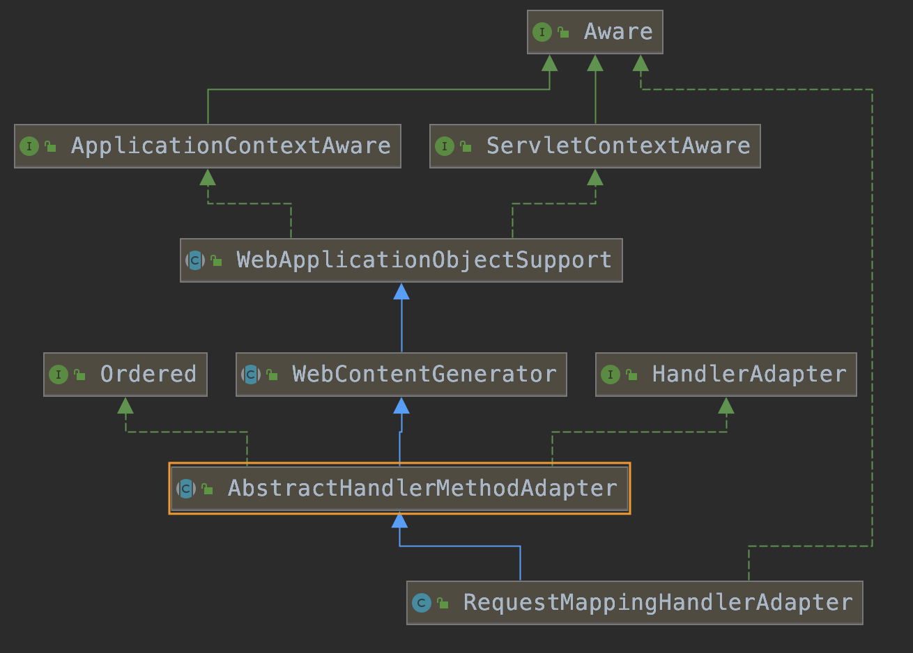 public abstract class AbstractHandlerMethodAdapter extends WebContentGenerator implements HandlerAdapter, Ordered {