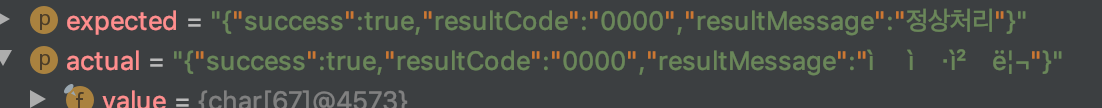 이것은 테스트 비교를 할 때 string 이 아닌 byte[]로 비교를 하면 된다.