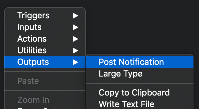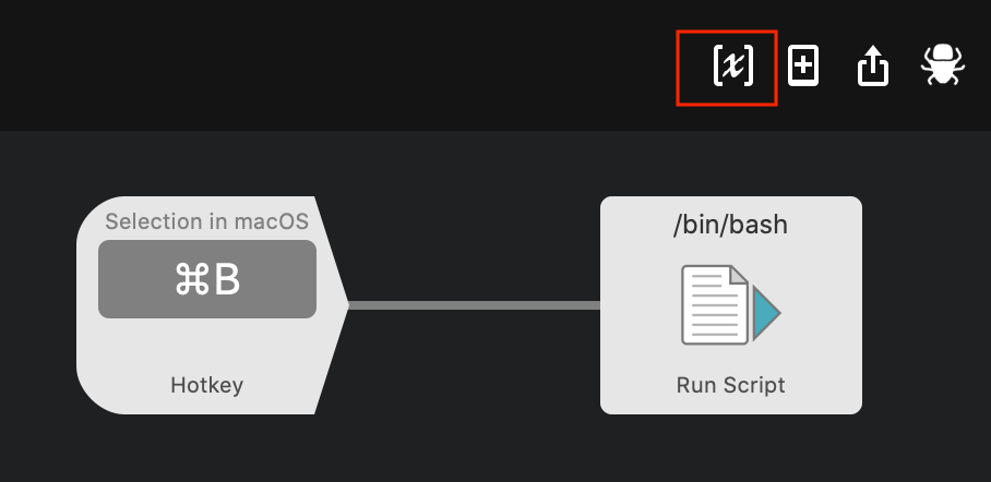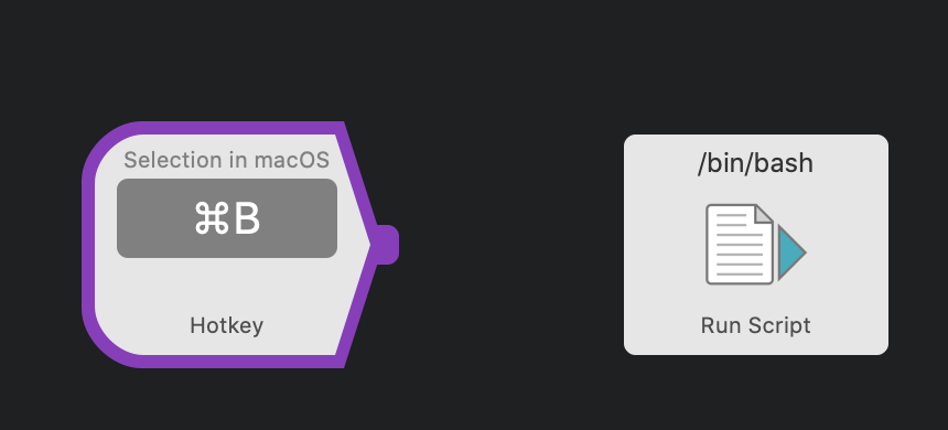 Hotkey Trigger와 Run Script Action이 생겼을텐데 연결을 위해서는 연결을 시작할 아이템위에 마우스를 올리면 오른쪽 옆면에 점이 생긴다.