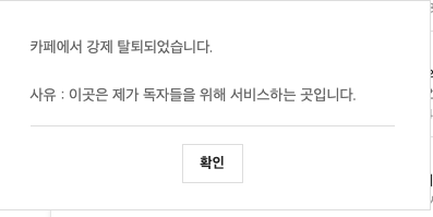 그리고 나는 그 카페에서 2020.07.24. 17:45에 강제탈퇴가 되었다.