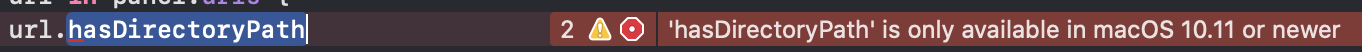 URL의 hasDirectoryPath의 경우 10.11+ 에서 지원이된다.