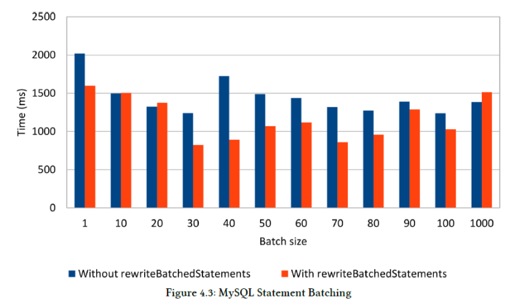 MySQL의 경우 rewriteBatchedStatements 스위치를 켜야 서버 사이드의 prepared statements들을 처리할 수 있다고 한다.