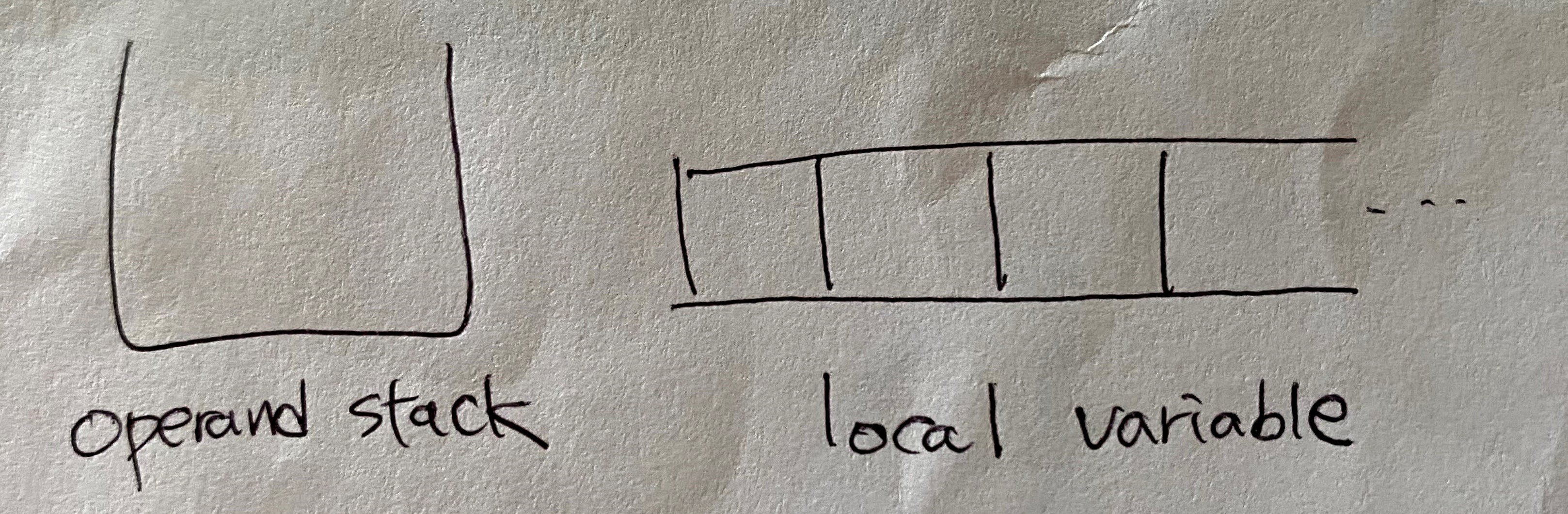 또한 각각의 frame에는 LIFO(last in first out) 구조의 스택(stack)이 존재하는데 이를 operand stack이라고 부른다.