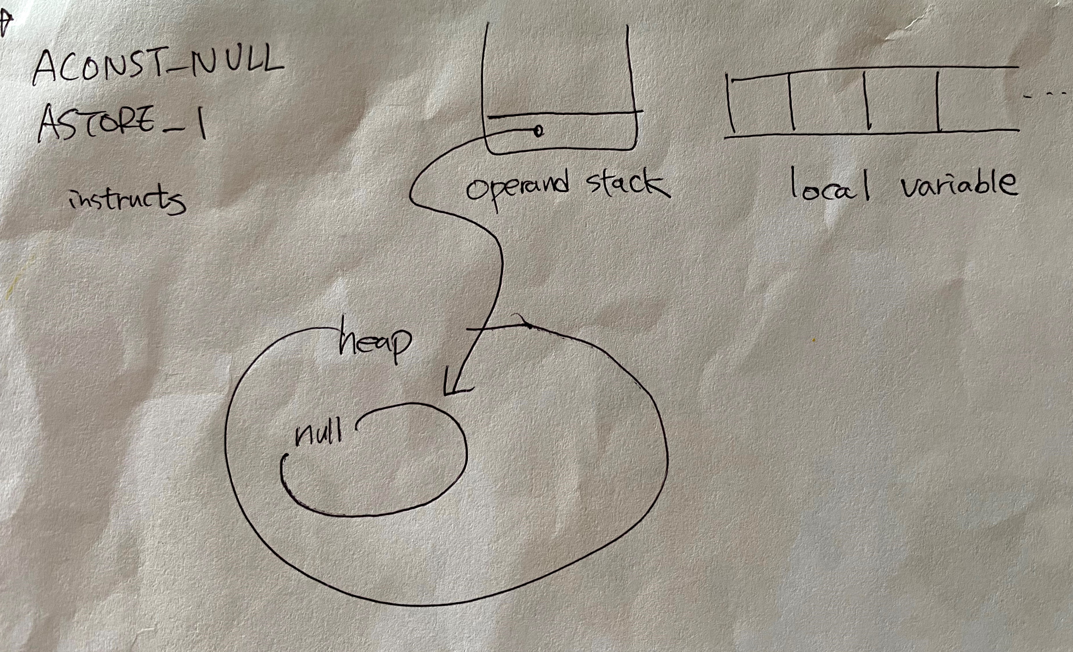 ACONST_NULL (0x1) 가 연산이 되면 아래와 같이 operatnd stack에 null 객체의 레퍼런스가 들어간다.