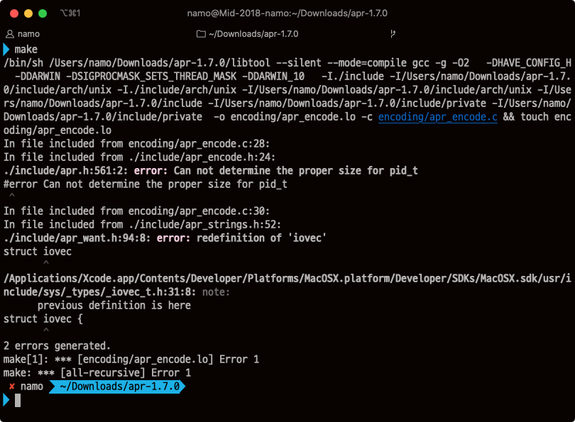 APR 라이브러리를 얻어서 해당 경로에 넣어주면 되는데 macOS에서 컴파일이 까다로웠다.