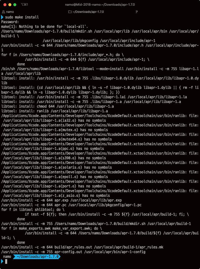 🍺 /usr/local/Cellar/apr/1.7.0: 59 files, 1.4MB