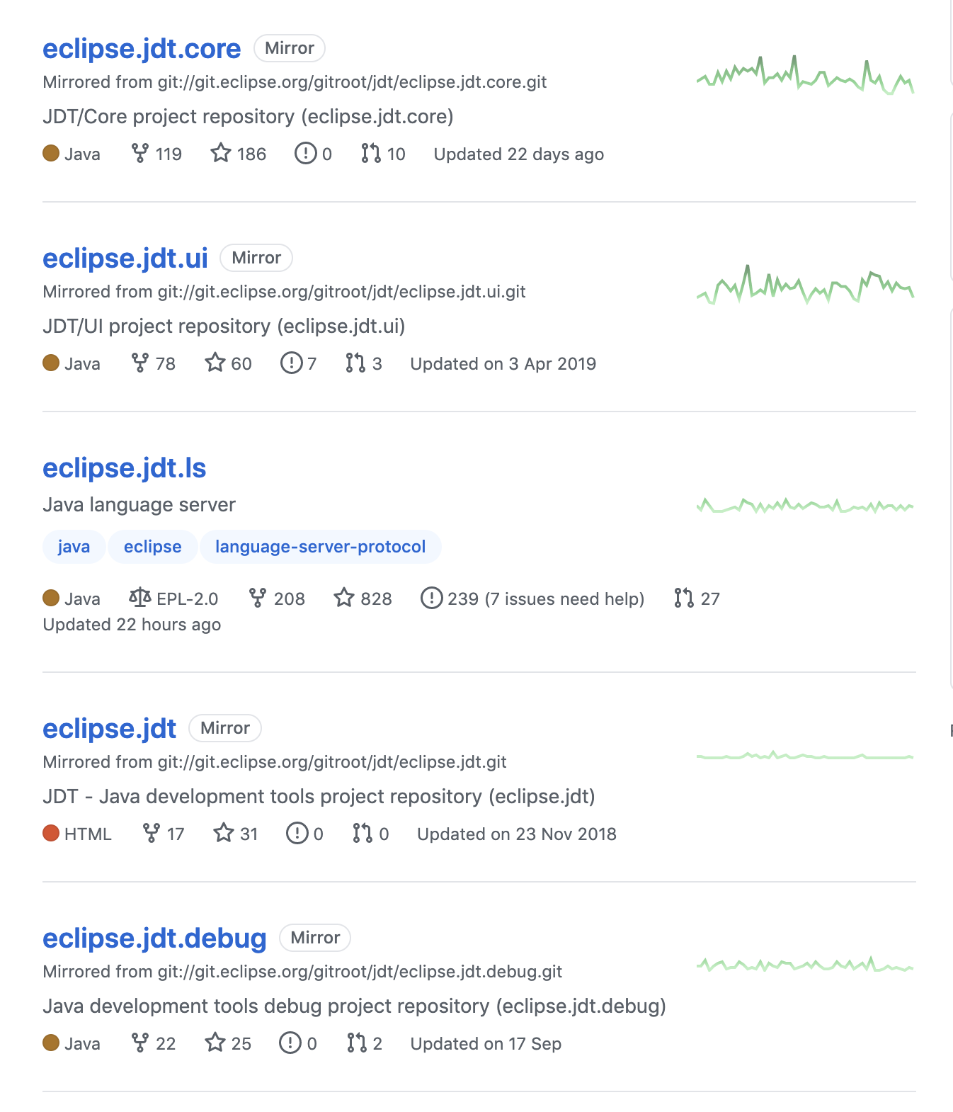 GitHub에서 jdt 리포지토리를 찾아보면 몇 가지로 나뉘어 있음을 알 수 있다.